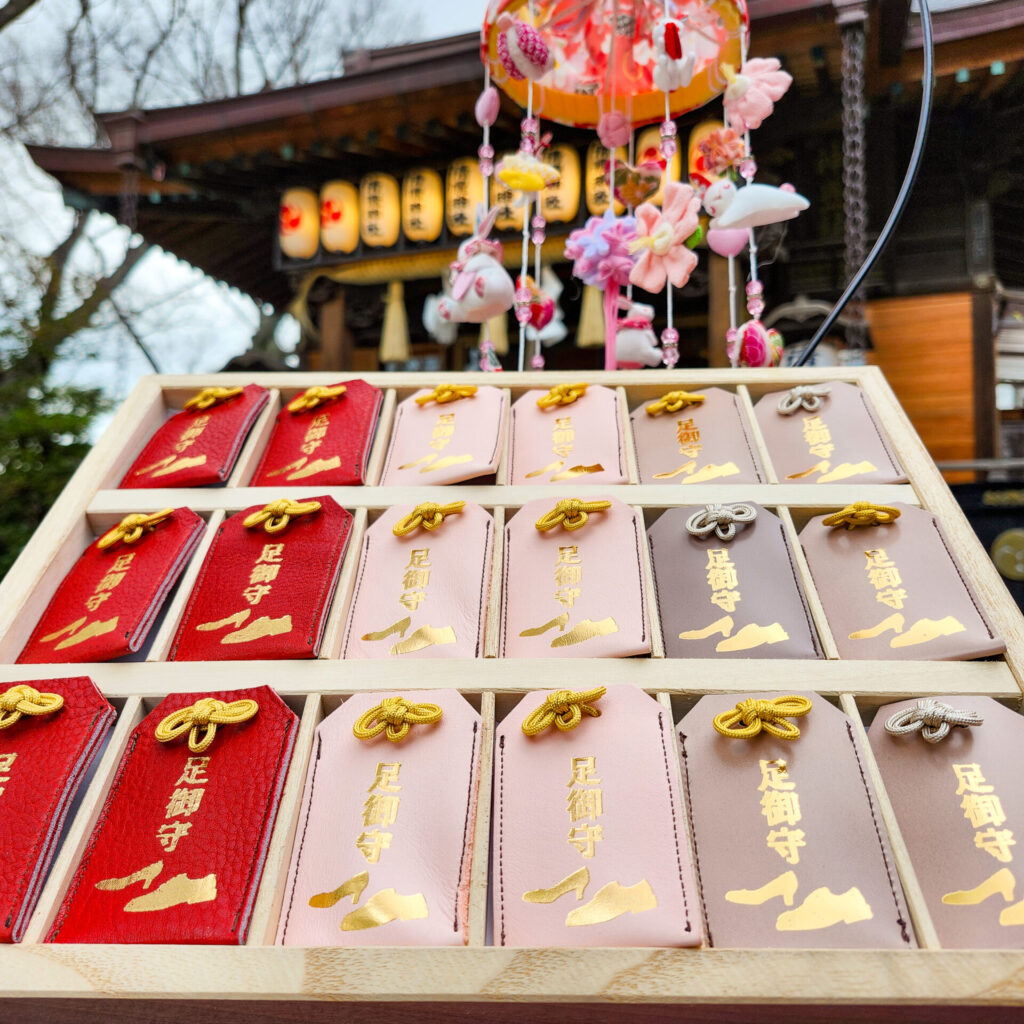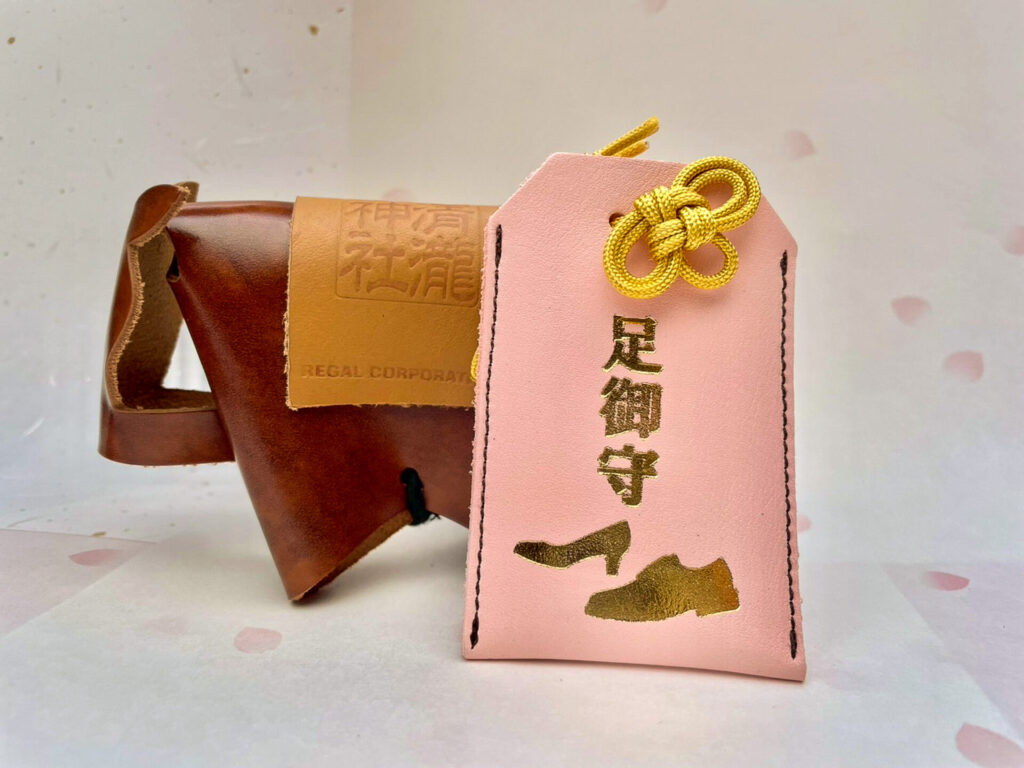 こちらの”足御守”でございますが、同じ浦安市に処を構えます”株式会社リーガルコーポレーション”様が環境への配慮と資源の有効活用のため、靴の製造過程で発生した端材を用いご奉製いただきましたお守り袋に神符を込めた御守でございます。